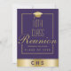 Mande seus colegas de 10 turmas de reunião de turma nosso convite de cartão plano moderno. Este elegante modelo de design apresenta um fundo de borda roxo e brilhante de ouro com falsa tipografia de ouro que lê "10ª Reunião de Classe" com o nome da sua escola e ano para personalizar Abaixo está o monograma da sua escola. A parte de trás do cartão tem mais detalhes de celebração para você personalizar. Elaborado por ©Tim Coffey e Susan Coffey.