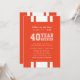 A reunião de classe de 40 anos da Varsity convida com as palavras "40 Anos de Reunião" em um estilo colegial varsity contra um padrão de listras brancas e uma cor de fundo editável (clique em personalizar para mudar) na frente. A placa tem um padrão de listras brancas em relação a uma cor de fundo editável (clique em personalizar para mudar) para o lado traseiro. Personalize-o substituindo o texto do marcador de posição. Para obter mais opções, como alterar a fonte e seu tamanho/cor ou o espaçamento entre letras, clique no botão "Personalizar". *Observe que a Marca d'água do Zazzle que aparece na visualização de zoom NÃO aparecerá no produto impresso final. © Rosewood e Citrus