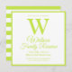 Prepare-se para se divertir durante o verão! O costume faz o seu próprio convite de reunião familiar e personaliza-o com o sobrenome inicial da sua família. A parte traseira do design apresenta listras sempre divertidas no verde limão de cor de verão da moda. Criado a adicionar alguma cor e brilho aos planos de verão da sua família. Disponível em cores diferentes.