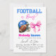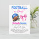 Elegante O que será Bebê é futebol ou Arcos Pensados Gênero Revelam Convite em destaque arco rosa-d'água e bolas de futebol azuis. Produtos correspondentes que você pode encontrar na coleção.