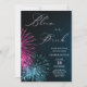 Um fogos de artifício temido gênero de bebê revela convite de festas. O texto branco elegante da tipografia diz "azul ou rosa", em um fundo noturno no céu com explosões de fogos de artifício azuis e cor-de-rosa. Personalize editando o convite digital ou impresso com seus detalhes de evento exclusivos.