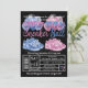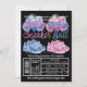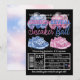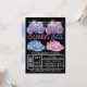 Convite de revelação do sexo com tênis de bebê rosa e azul e balões em um fundo preto. Basta adicionar os detalhes do seu evento.