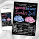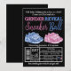 Convite de revelação do sexo do bebê em baile de tênis com tênis de bebê brilhantes rosa e azul em um fundo preto. Basta adicionar os detalhes do seu evento.