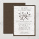 Convite de revelação do sexo com tema de cervo do campo da floresta e bétula com fundo de aparência de casca de bétula e texto marrom rico.