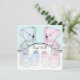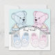 Convites adoráveis de revelação do sexo do bebê menino e bebê menina em rosa e azul com ursinhos de pelúcia, mamadeiras e botinhas. Adicione seus detalhes na frente e/ou no verso deste convite de festa de revelação do sexo do ursinho de pelúcia rosa e azul, escolhendo os detalhes do evento, estilo de fonte, tamanho e cor da fonte e texto.