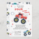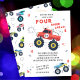 Rev Your Engine 4th Birthday Kids Monster Car Trucks Invitation apresenta caminhões de monstros bonitos e coloridos com o texto "Revise seu motor, muda uma velocidade, quatro velocidades à frente!" no moderno script de tipografia vermelha acentuado com o número 4 e rabiscos. Perfeito para crianças na quarta festa de aniversário. Envie o e-mail ou simplesmente baixe o convite digital compartilhável para download. Elaborado por ©2023 Evco Studio. Para obter informações sobre a coordenação de itens, consulte www.zazzle.com/store/evcostudio