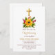 Mola de girassol, convites florais, amarelos neutros, dourados e cristãos brancos. Dourada cruz, minimalista, convites para o Batismo Boho.