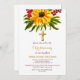 Mola de girassol, convites florais, amarelos neutros, dourados e batismos brancos. Dourada cruz, minimalista, convites para o Batismo Boho.