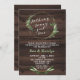 Design de cartão encantador com folhas e ramos de oliveiras a cores aquáticas, falso quadro de ouro, sobre fundo de celeiro antigo. Use a ferramenta Personalizar para adicionar suas informações. Para itens correspondentes, por favor, visite minha Coleção Dourada Olive Greenery.