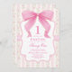 Mande a sonhadora elegância do estilo de coquete romântico vintage com este primeiro convite de aniversário do 'Rico Um'." Projetada com um arco cor-de-rosa vibrante, um padrão delicado de faixa de rosa e detalhes de local seguro, esta placa emite charme de safra e sofisticação de coquete. Perfeito para uma celebração de chique, menina, ou jardim de casa, é a melhor escolha para pais que adoram estética de partido romântica e inspirada na herança.