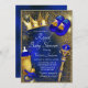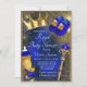Rico de chá de fraldas royal blue prince convite com coisas fofinhas royal azul e ouro príncipe em um lindo fundo azul e ouro. Este convite para o chá de fraldas príncipe real é facilmente personalizado com os detalhes do seu evento.