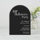 This RIP theme, black and white Halloween party design features stylish typography, a chic modern design in a spooky gravestone shape with a black and white stripe. Perfect for hosts planning a spooky, RIP themed Halloween celebration. Perfect for a timeless Halloween RIP themed party invitation!