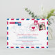Um divertido e criativo Airmail Listrado de Vermelho e Azul para Recepção de Casamento Pós-Casamento para enviar a todos os seus convidados anunciando seu casamento no destino. Este local é para Riviera Maya, México com um mapa-múndi e um coração vermelho colocado sobre a localização da Jamaica. Se você tiver um local diferente, por favor envie um e-mail para paula@labellarue.com ANTES de fazer um pedido e eu configurarei um para esse local. Adicione sua foto de casamento favorita na área do selo. Certifique-se de escolher o papel cartão que você gosta para imprimi-lo!