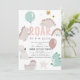 Este convite de chá de fraldas de "rugido" bonito e moderno apresenta um fundo branco com dinossauros e balões. O verso apresenta um fundo de rosa claro com pegadas de dinossauro. Personalize para suas necessidades. Você pode encontrar produtos correspondentes na minha loja.