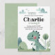 Get ready for a dino-mite celebration with this adorable dinosaur-themed birthday party collection! Featuring a hand-drawn, pastel green T-Rex in a cute landscape of hills and trees, this collection is perfect for little boys who love dinosaurs. Personalize with your child's name, age, and party details to create a one-of-a-kind event they’ll never forget!