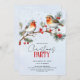 Convite Robin birds, branch and berries Christmas holiday