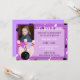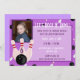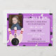 Celebre a festa de aniversário do tema da boliche do seu filho em estilo! O convite apresenta um fundo roxo com pinos de boliche e padrão de bola de boliche. Sobre o plano de fundo há um retângulo roxo claro com texto em fontes brancas e roxas alternadas. O texto é totalmente personalizável. Há um lugar para adicionar uma foto da criança de aniversário. Abaixo da área de fotos há três pinos de boliche cor-de-rosa e uma bola de boliche preta. Dentro o pino da boliche média é um lugar para personalizar com a idade da criança de aniversário. O reverso do convite é roxo claro e sólido.