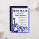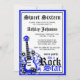 Uma guitarra de punk aparece neste convite de aniversário real azul e preto doce 16. Ilustração por © Sanqunetti Design