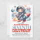 Ideal for a seventh birthday party, this invitation pairs wonderfully with space-themed decorations, galaxy party supplies, and astronaut party favors. The cheerful illustration and vibrant colors create a fun and welcoming atmosphere that guests of all ages will love. Whether you're planning a backyard party, indoor celebration, or space adventure theme, this invitation helps make the occasion feel extra special.