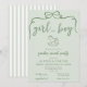 Celebrate your little one in timeless, heirloom-inspired style with this elegant sage green gender reveal invitation. Featuring a soft, neutral color palette, delicate script typography, and a charming rocking horse illustration, this invitation blends classic sophistication with a modern preppy aesthetic. The graceful bow detail and subtle stripe pattern on the back create a refined, coordinated look that feels polished, elevated, and effortlessly stylish.
