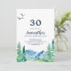 Este convite à aniversário de 30 anos Rocky Mountain é perfeito para uma festa de aniversário ao ar livre. O design apresenta uma paisagem de natureza selvagem pintada, azul e verde, com pinheiros de aquarela, pássaros e montanhas.
