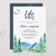 Esta Montanha Rochosa que eu faço um convite de janto de ensaio de CHURRASCO é perfeito para um evento ao ar livre. O design apresenta uma paisagem de natureza selvagem pintada, azul e verde, com pinheiros de aquarela, pássaros e montanhas. Este convite é perfeito para um janto de ensaio, casais, chá ou festa de noivado.