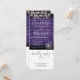 Um convite de casamento tudo-em-um com lindas luzes de corda e jarros de alvenaria, nomes de assinatura modernos e tipografia elegante em um fundo de madeira roxa rústica. O convite inclui um cartão de RSVP que pode ser destacado e detalhes das informações dos convidados. Projetado por Thisisnotme