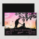 Silhueta romântica de um casal sob uma árvore com uma lua cheia ao fundo e algumas borboletas. O fundo é um céu rosa e laranja estrelado e nublado. Ótimo para um anúncio de fuga romântica ou festa de noivado.
