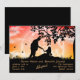 Silhueta romântica de um casal sob uma árvore com uma lua cheia ao fundo e algumas borboletas. O fundo é um céu estrelado, nublado, vermelho e laranja. Ótimo para um anúncio de fuga ou festa de noivado.