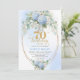 Convite Romantic 70th Birthday Blue Floral Gold Invitation