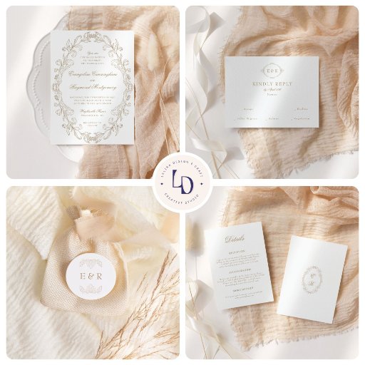 Wedding invitation featuring a beautiful ornate baroque style frame encircling elegant script and serif fonts in which all your personalized information is written in. You can find more matching products from this stunning wedding collection in our store.