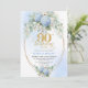 Convite Romantic Blue Hydrangea Gold Frame 90th Birthday