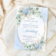 Make your special day unforgettable with this elegant watercolor wedding invitation, thoughtfully designed to shine with Zazzle’s premium print quality. Featuring soft pastel blue hydrangeas, delicate eucalyptus and greenery foliage, and a refined gold glitter oval frame, this invitation blends timeless romance with modern sophistication.