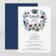 Convite Romantic Blue Shades Floral Wreath Graduation