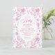 Celebrate your upcoming arrival with this elegant baby shower invitation featuring classic French toile de Jouy roses. Soft dusty pink, blush, and pink and white floral patterns create a timeless, romantic look accented by refined rose gold tones. Professionally printed by Zazzle, this design offers crisp details, beautiful color balance, and a smooth, high-quality finish that highlights the intricate rose pattern. Perfect for a classic, floral, or vintage-inspired baby shower, this invitation is fully customizable and arrives polished and photo-ready. A charming choice for welcoming baby with graceful, traditional floral style.
