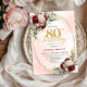 Convite Romantic Burgundy Floral Gold Frame 80th Birthday