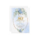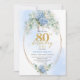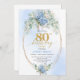 Convite Romantic Dusty Blue Floral Gold 80th Birthday