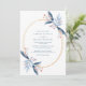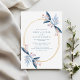 This romantic wedding invitation blends elegant dusty blue tones with lush greenery accents, highlighted by sophisticated gold geometric details. Featuring clean lines and a contemporary layout, the design includes customizable fields for the couple's names, date, time, and venue. Perfect for couples seeking a refined, nature-inspired yet modern look, this template is ideal for both printed and digital invitations. Fully editable to match your wedding style.