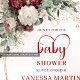 Convite Romantic Maroon Floral Gold Baby Shower Invite