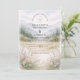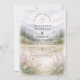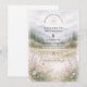 A serene and atmospheric design inspired by misty mountain landscapes and quiet forest scenery. Soft watercolor layers of pine trees and distant hills fade gently into the background, creating depth and a calm, romantic mood. The muted palette of sage green, cool grey, and soft ivory gives the design a refined, nature-driven elegance—perfect for couples drawn to minimalist aesthetics and intimate outdoor celebrations.