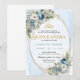 Convite Romantic Pastel Blue Gold Eucalyptus Quinceañera