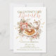 The background remains clean and luminous, allowing the illustrated elements to float gracefully while maintaining visual balance and clarity. Painterly textures, gentle shading, and organic transitions give the illustration a handcrafted, heirloom-inspired appearance. The overall color palette blends warm ivory, blush, champagne gold, and soft greenery, creating a romantic yet inviting atmosphere suited to daytime celebrations. Typography styling is elegant and flowing, echoing the curves of the florals and teaware while keeping the layout harmonious and readable.