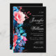 Convite Romântica Casamento Floral Elegante Script Azul Pr