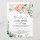 Este cartão de recepção romântico de flores de elopemento é perfeito para uma elegante festa de elopemento poste. O design floral apresenta flores cor-de-água, cor-de-rosa-claro, cor de pêssego e branca em cascata. As placas RSVP são vendidas separadamente.