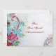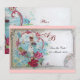 Elegante, sofisticado, vibrante e clássico design floral. Rosas vermelhas, rosadas, flores azuis com uma pomba branca carregando uma carta em uma paisagem marinha. Elaboração gráfica digital em estilo vintage por Bulgan Lumini (c) Fácil de personalizar com suas iniciais e texto próprio como cartão de anúncio de festa de casamento / cerimônia / cartões de lugar / cartões de save-the-date / lembranças / cartões de agradecimento / chás de noiva / chás de bebê / aniversários / Sweet 16, festas de Qunceanera, / Bat Mitzvah / formaturas / chás de noivado / aniversários de casamento / celebrações ou qualquer outro evento que você deseje!