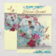 Elegante, sofisticado, vibrante e clássico desenho floral. Rosas vermelhas, rosadas, flores azuis com uma pomba branca carregando uma carta em uma paisagem marinha. Elaboração gráfica digital em estilo vintage por Bulgan Lumini (c) Fácil de personalizar com suas iniciais e texto como cartão de anúncio de festa de casamento / cerimônia / cartões de lugar / cartões de save-the-date / lembranças / cartões de agradecimento / chás de noiva / chás de bebê / aniversários / festa Sweet 16, Quunceanera, / Bat Mitzvah / formaturas / chás de noivado / aniversários / celebrações ou qualquer outro evento que você desejar!