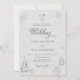 Um elegante, moderno romântico, modelo de convite para casamento no inverno branco a neve com um tema maravilhoso de inverno com pinheiros e flocos de neve cobertos de rochas e reluzentes (são efeitos digitais, não pedras reais ou reluzentes!) e um fundo branco brilhante, de inverno. Os monogramas dos casais estão rodeados por flocos de neve delicados e etéreos e rochas. Elegante e elegante, com suas discretas rochas e faíscas, ajustado uma elegante celebração de casamento no inverno, assim como um casamento romântico mais relaxado e romântico.
