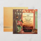 Um convite romântico de casamento vintage com uma pintura de uma janela com luzes de corda, livros e rosas com vista para uma paisagem suave e montanhosa. A parte traseira mostra um design dourado estilizado em listras em uma parede vintage. (Se desejar, você também pode escolher uma foto personalizada ou cor de fundo simples.)
