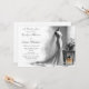 Romântica Vintage Bridal Sketch Invitation with Perfume Bottle Accent Este elegante convite para casamento apresenta um desenho de lápis macio de um vestido de noiva vintage em um manequim, um buquê delicado em uma pequena mesa, e uma garrafa de perfume rosa pincelada inspirada pelo Chanel — o único sotaque colorido em um fundo branco limpo. Perfeito para casamentos românticos com um eterno ou talento parisiense. Uma bela escolha para noivas, chás de panela, casamentos de butique e cerimônias íntimas.
