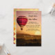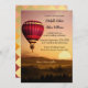 Convite do casamento que caracteriza um balão de ar quente romântico com uma silhueta do casal sobre uma paisagem sonhadora no por do sol. Este convite tem um cartão de harmonização de RSVP.
